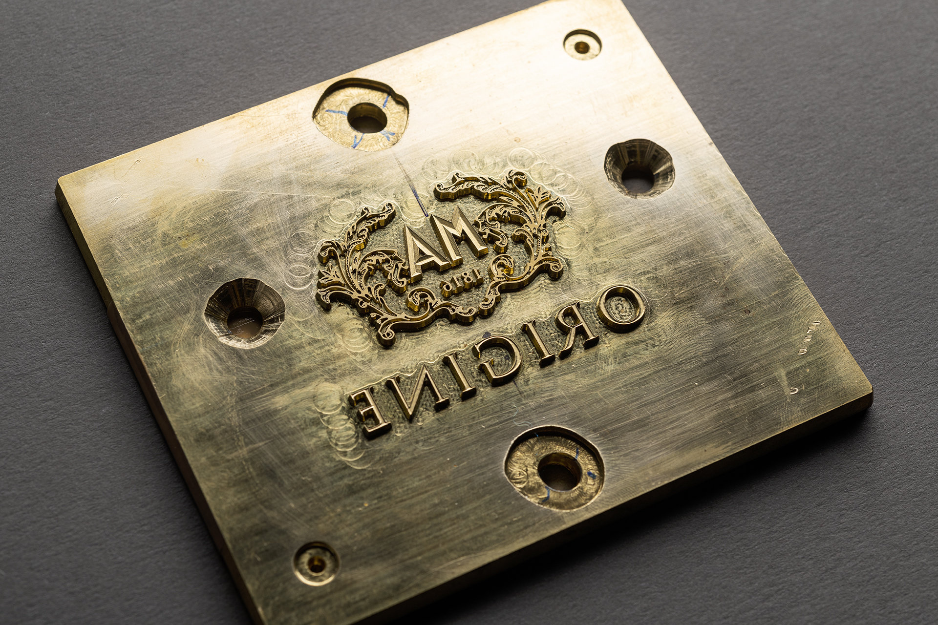 Etifrance, la impremta filial de Vidal & Armadans al sud de França, va assumir amb Origine una producció molt complexa. El relleu piramidal requereix una destresa tècnica especial, fundada en un coneixement profund de les aplicacions d’utillatge, tintes i papers. Tot un repte resolt amb brillantor en una etiqueta d’aspecte i tacte irresistibles. Una invitació a sentir la vocació singular de Mas Amiel en el seu entorn: una barreja de presència i hedonisme. Cultura clàssica en estat pur.